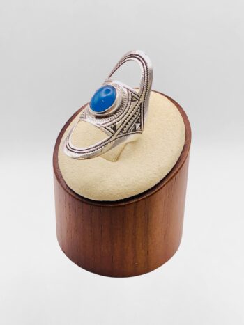 Bague Touareg avec Agate bleue et monture en argent. Taille 53.