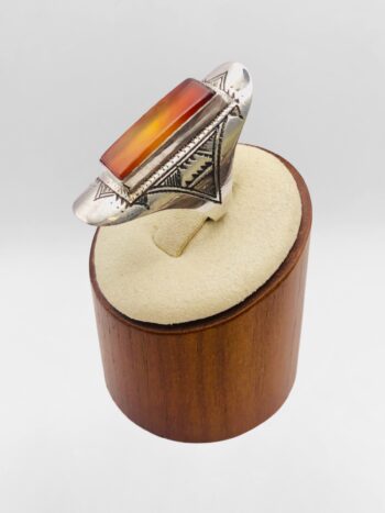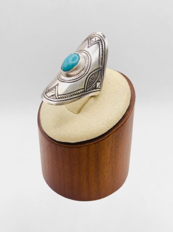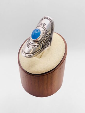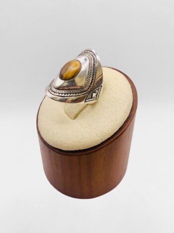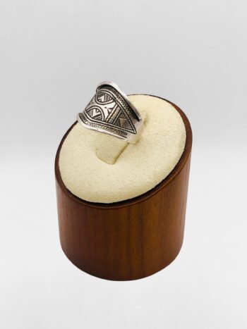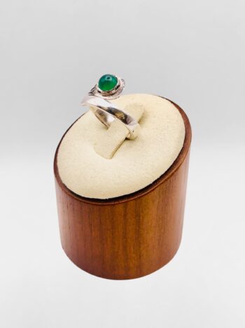Bague Touareg ouverte avec pierre Onyx vert montée en argent.